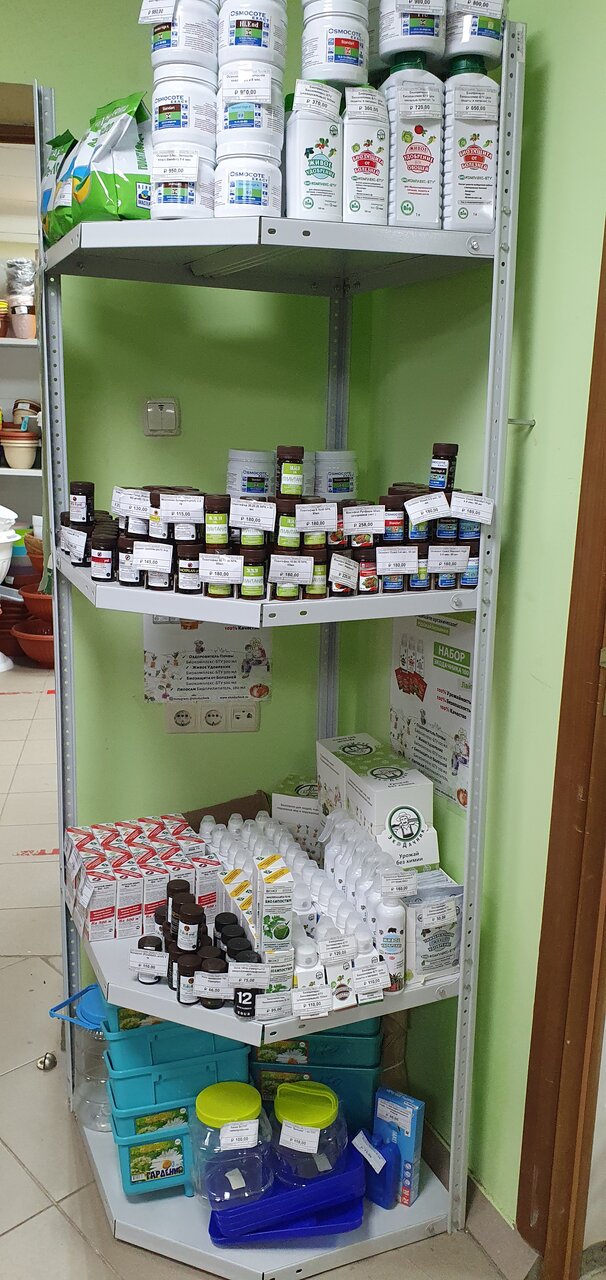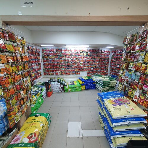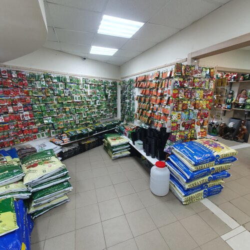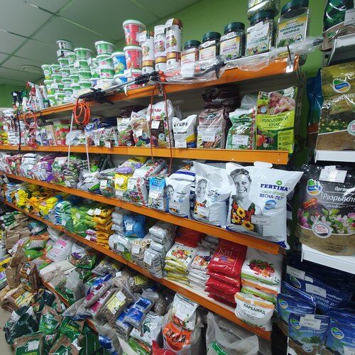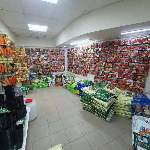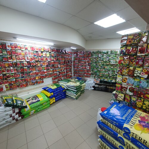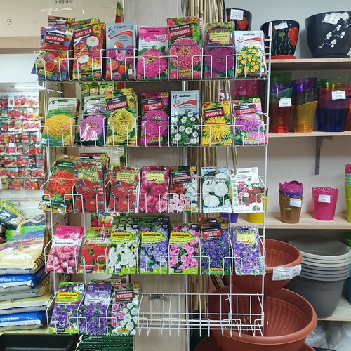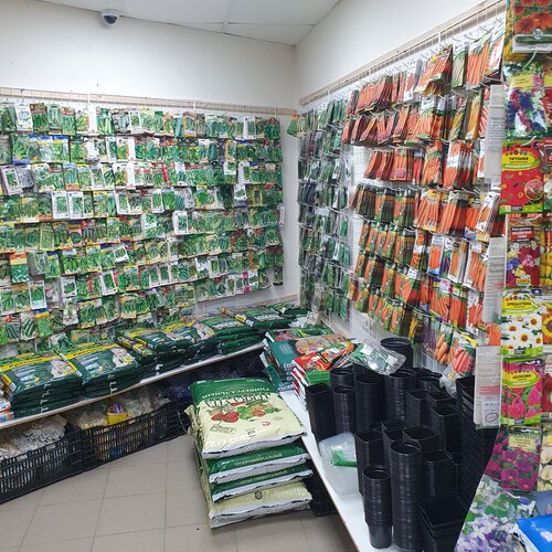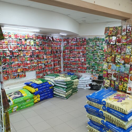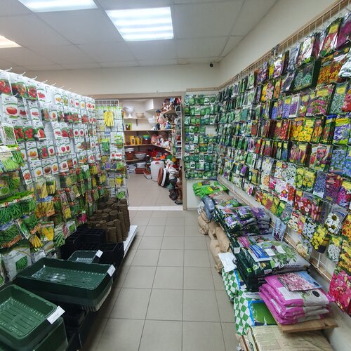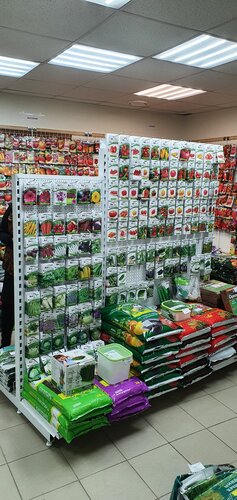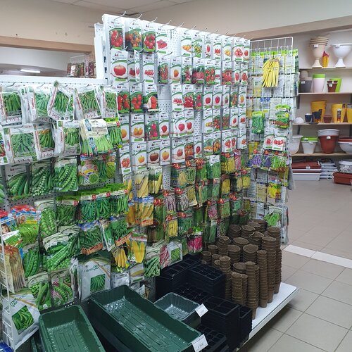 Это супер магазин. Чего там только нет. Огромное количество семян, грунтов и препаратов для растений. Огромные выбор кашпо. В весенне-летний период продаётся рассада.