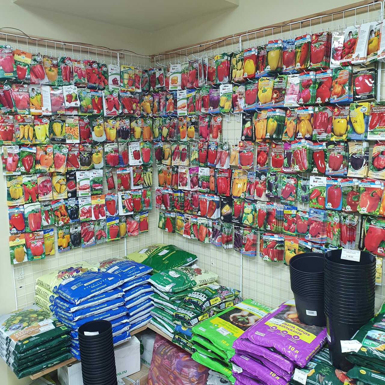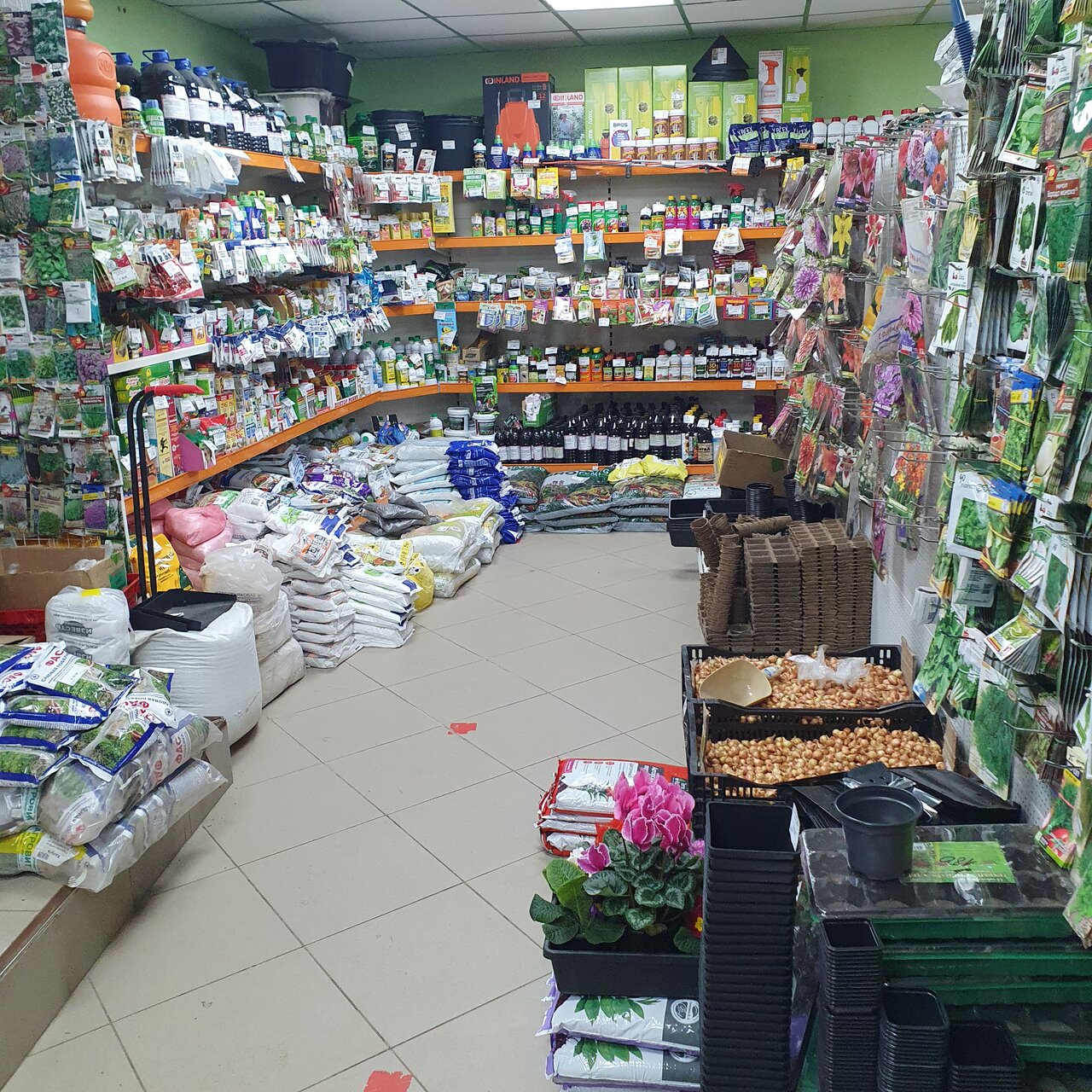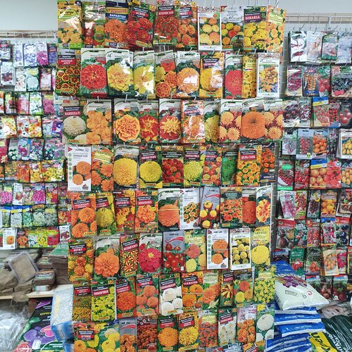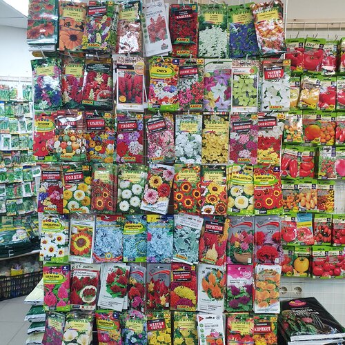 Это супер магазин. Чего там только нет. Огромное количество семян, грунтов и препаратов для растений. Огромные выбор кашпо. В весенне-летний период продаётся рассада.
